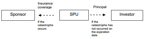 Since the assets and liabilities related to the issuance of the bonds remain with the SPU, the CAT bonds are exclusively an insurance mechanisms for the sponsor and do not entail any liability. Its main advantage is to break down and transfer the risks to a large group of investors when the insurance of a single counterpart is too expensive or impossible to take. CAT bonds offer the investors a performance higher than the market rates (because they also pay a premium in addition to the low or no risk performance) and a unique opportunity to diversify their portfolio, because the catastrophic risks are seldom related to the evolution of stock or bond markets. |