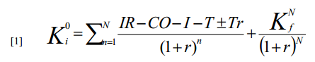 Where Ki represents the initial capital of the period; IR, revenues; CO, operating costs; I, investments; T, taxes; and Tr, transfers from the Treasury, which may be positive -explicit subsidies- or negative -payment of concession fee-. These elements represent the free cash flow received by the firm. The opportunity cost of capital - r - is located in the denominator.