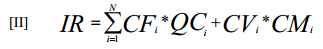 where: IR is the required revenue, CFi is the fixed charge for customer category i, QCi is the number of customers in category i, CVi is the variable charge for customer category I, and CMi is the average consumption for category i.