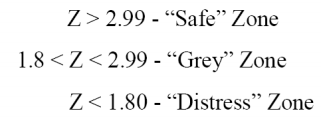 As to the results, the Z score means that when a company, considering its financial indicators, receives a value above 3 (three), the company is a healthy firm, whereas if such value is below 1.8, the company will end up entering bankruptcy. As to the 1.8-3 open interval, it is recognized as a gray zone.