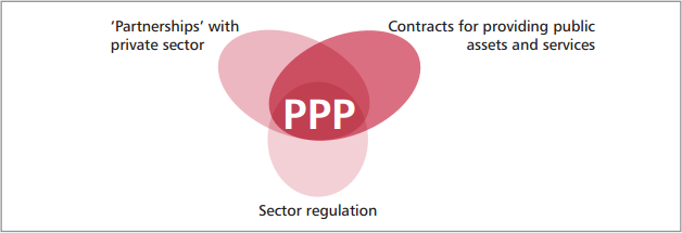 Besides setting out what is defined as a PPP for the purpose of this Reference Guide, it is also helpful to clarify what is not. Figure 1.2 illustrates the intersection between PPP and three related concepts, described in turn below: other types of contract with the private sector for providing public assets and services; other types of 'partnerships' with the private sector; and regulation of private sector service provision.