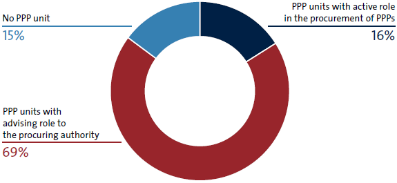 The functions and roles of PPP units (figure 4) vary across the economies surveyed. It is particularly interesting that in 16 percent of the economies, the PPP unit not only provides advice to the procuring authorities on the stages of the procurement process but also takes a more active role in the procurement of PPPs. In those cases, a PPP unit can either be exclusively responsible for PPP procurement (as in Honduras, where Coalianza is the only public agency that can procure PPPs)22 or conduct it jointly with the procuring authority (as in the Arab Republic of Egypt).23
