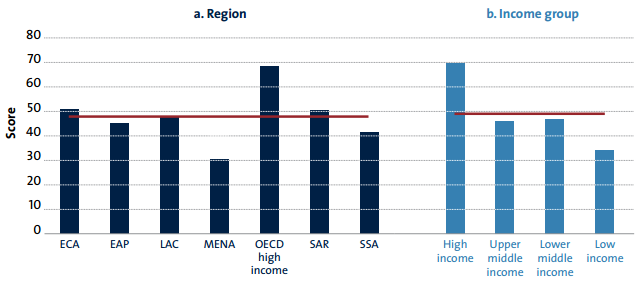 Figure 5 Preparation of PPPs, score by region and income group (score 1-100)