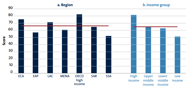 Figure 8 PPP procurement, score by region and income group (score 1-100)