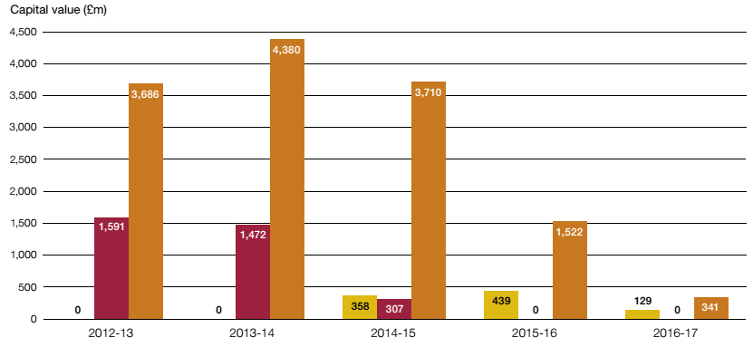 Source: National Audit Office analysis of InfraDeals and HM Treasury's PFI database |