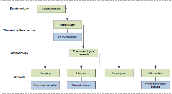 Crotty's (1998) Social Research Design Framework will be applied to this research as it provides clear direction based upon the theoretical assumptions that underpin the choice of the research problem, the research questions, the research aim and objectives, and points to a methodology and method. Fig. 1.2 below illustrates the stances that have been selected and thus form the foundation for the research design.