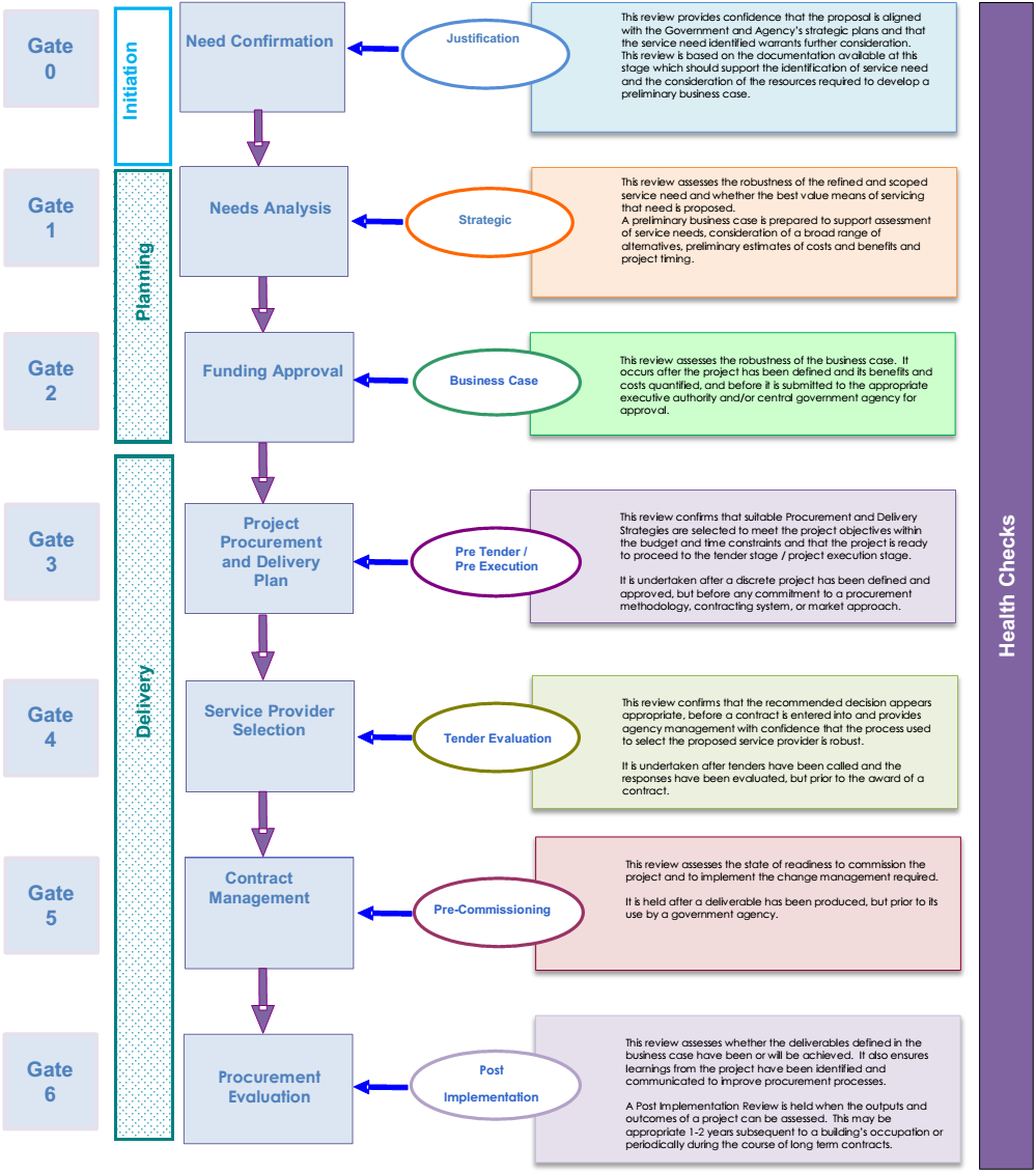 | ► Gateway Health Check. A Gateway Health Check complements the Gate Reviews by providing a 'point in time' insight into areas of concern which may impact completion of the next Gate or project outcomes. Gateway Health Checks are conducted, for example, on an interval basis (in particular where there is a long gap between Gates); when there is a material change in operating environment or staff; or, at the specific request of the Delivery Agency or Policy Owner. Gateway Health Checks do not replace the need for review at each Gate nor is it a substitute for robust project governance. |