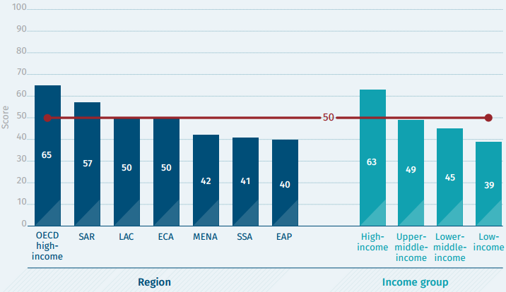 Figure 4 Preparation of PPPs, score by region and income group (score 1-100)
