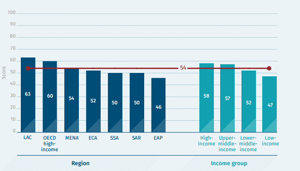 Figure 14 PPP contract management, score by region and income group (score 1-100)