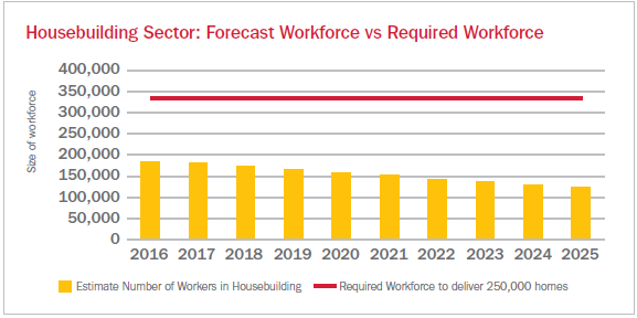 We can already see that based on the current situation of an 'ageing workforce' and the need to deliver at least 250,000 homes each year, Figure 16 highlights that we are a long way from having the right size of labour.
