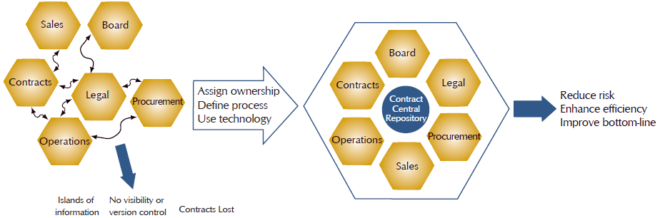 | Adopt an enterprise wide approach | Many benefits spring from an enterprise-wide approach that brings together contracts of all types in one repository. Some processes-such as legal approval-are common to all types of contracts. Board, legal and finance departments are all involved on both buy side and sell side contracts. However, some contracts do not fit neatly into either buy side or sell side frameworks. Examples include intellectual property rights and non-disclosure agreements. A further complicating factor is that some organisations can be partners, suppliers and customers all at once. An enterprise approach allows an aggregate portfolio view of complex relations. | "We often see companies entering into technology transfer or licensing agreements on the foundation of intellectual property rights they have not registered or no longer maintain. Such negligence might lead to costly litigations or worse, turn a partner into a competitor." Novagraaf Leading European IP Law Firm |