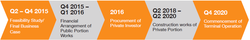 The period of calculation (project life) in this project evaluation is justified to be 33 years starting in 2016 for procurement of investor and in 2020 starting the terminal operation through 2049 for the Development Plan.