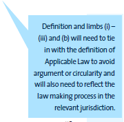 (c) a change in the interpretation or application of any Applicable Law, which (i) adversely affects (i) the ability of a Party to comply with its obligations under the PPP Contract or (ii) [the Base Case Equity IRR]; and (ii) was not [published as a draft law] in the [insert applicable publication source for legislation] or in effect at the Setting Date. [Adapt as appropriate for "in the public domain"]. |