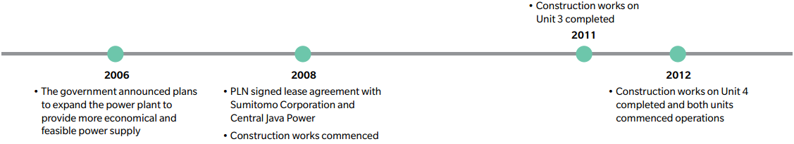 | PROJECT STAGE: Construction completed PROJECT VALUE: $2.60 billion PROJECT OWNER: PT. Central Java Power (Sumitomo Corporation) PLANNING AUTHORITY: Ministry of Energy and Mineral Resources, Indonesia EPC CONTRACTOR: Sumitomo Corp., Wasa Mitra Engineering |