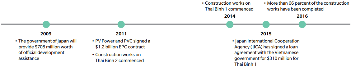 | PROJECT DETAILS: Project involves the the construction of a 1,800 MW thermal power complex in Thai Binh which will comprise of two power plants: Thai Binh 1 (600 MW) and Thai Binh 2 (1,200 MW). Construction works began in 2011 and are expected to be completed by end 2017 |