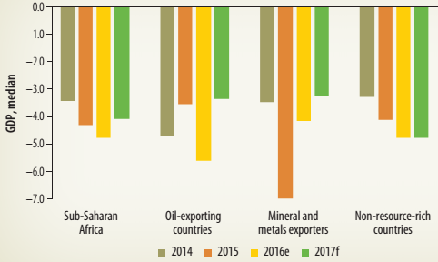 The fiscal balances of non-resource-intensive countries worsened in 2016, reflecting elevated investment spending levels. Widening fiscal deficits and, in some cases, sizable exchange rate depreciations have resulted in rising public debt levels in the region. Large non-concessional borrowing for infrastructure development has led to high debt servicing costs in several countries. South Africa's 2017/18 budget reaffirms the government's commitment to fiscal consolidation, with the introduction of a new personal income tax bracket to mobilize additional revenue. It remains to be seen whether the stance of fiscal policy will be affected by political developments. Among oil exporters, Angola's 2017 budget targets a stable fiscal deficit, but the risks of large expenditure overruns in the run-up to the election this year remain high. In Nigeria, the government plans to increase infrastructure spending, financed in part through borrowing. Elsewhere, Ghana's 2017 budget signaled a slowdown in fiscal consolidation, which could increase fiscal risks, given limited fiscal space. Mozambique's budget points to a moderate increase in spending. Reflecting the continued weakness of fiscal balances, caused by the fall in commodity prices and the continued upward trend in government debt, the region's rating outlook in 2017 remains negative.
