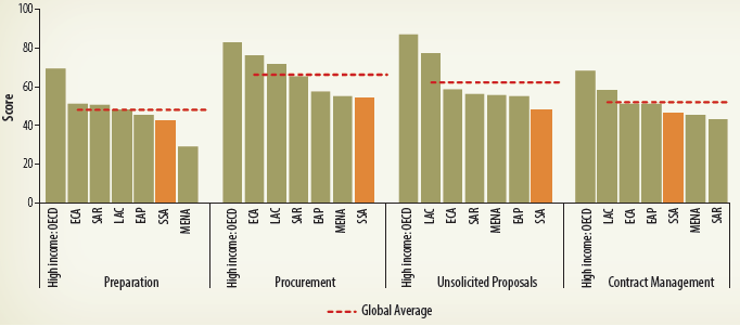 | FIGURE 2.51: Benchmarking PPP Procurement Scores for Sub-Saharan African Countries, by Thematic Area | |