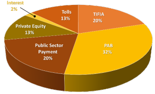 | ERC formally closed its financing for the Downtown Tunnel / Midtown Tunnel / MLK Expressway Extension on April 12, 2012. ERC's sources of financing for the project included $675 million in tax- exempt bonds that the public sector issued on behalf of ERC. These Private Activity Bonds, or PABs, allowed ERC to gain access to the tax-free municipal debt bond market, lowering its interest rates substantially. ERC also received a $422 million loan from the Federal credit program known as TIFIA, which stands for the Transportation Infrastructure Finance and Innovation Act. These sources of debt will be repaid from future toll proceeds collected over the 58-year period ERC was granted to construct and operate the project. ERC also contributed $272 million in equity of its own money to the project. | Elizabeth River Tunnels (Downtown Tunnel / Midtown Tunnel / MLK Extension)