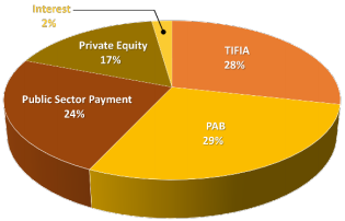 | The financing package for the Capital Beltway HOT Lanes included $348.7 million in at-risk shareholder equity provided by Capital Beltway Express. In addition, the company secured a $588.9 million loan from the U.S. Department of Transportation's (USDOT) Transportation Infrastructure Finance and Innovation Act (TIFIA) credit program. This program lends money to projects of national significance at low interest levels available only to the U.S. government. In addition, the company received approval from USDOT to raise $589.0 million by selling tax-exempt Private Activity Bonds (PABs). The Commonwealth of Virginia issued the PABs on behalf of Capital Beltway Express. The TIFIA loan and PABs reduced the concession company's financing costs and will be repaid with project revenues during the 75-year concession period. VDOT also contributed $495 million in public funding. This was an increase above the $409 million it agreed to contribute in 2007, due to scope addtions. VDOT's contribution is a subsidy and will not be repaid. | I-495 Capital Betway HOT Lanes