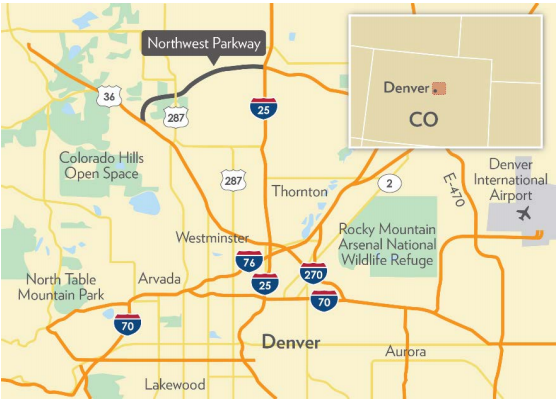 The Northwest Parkway is an 8.9-mile, four-lane toll road that forms part of the E-470 orbital highway in the northern Denver metropolitan area. The Parkway includes 26 structures, three major interchanges, four ramp plazas, and one mainline toll plaza. Originally developed by a public authority, the Parkway was leased to a private concessionaire in 2007 for 99 years. |