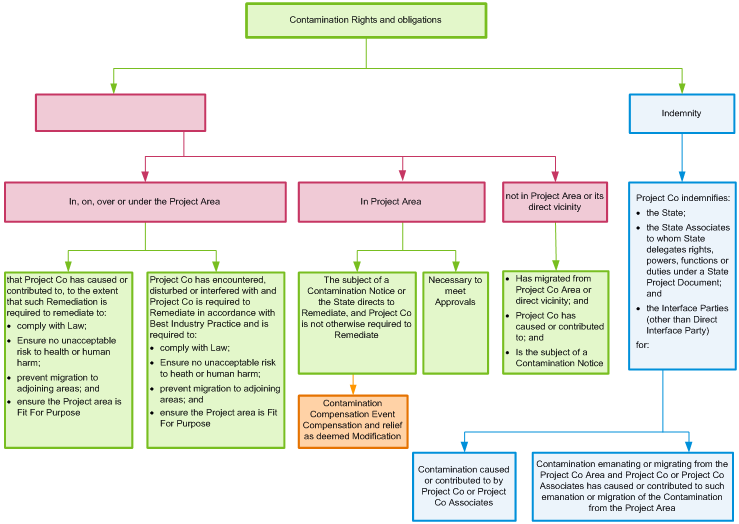 Diagram 10 below summarises Project Co's Contamination Remediation obligations and any Contamination and the Remediation work for which Project Co will be entitled to compensation and relief under the PV Standard Project Deeds.