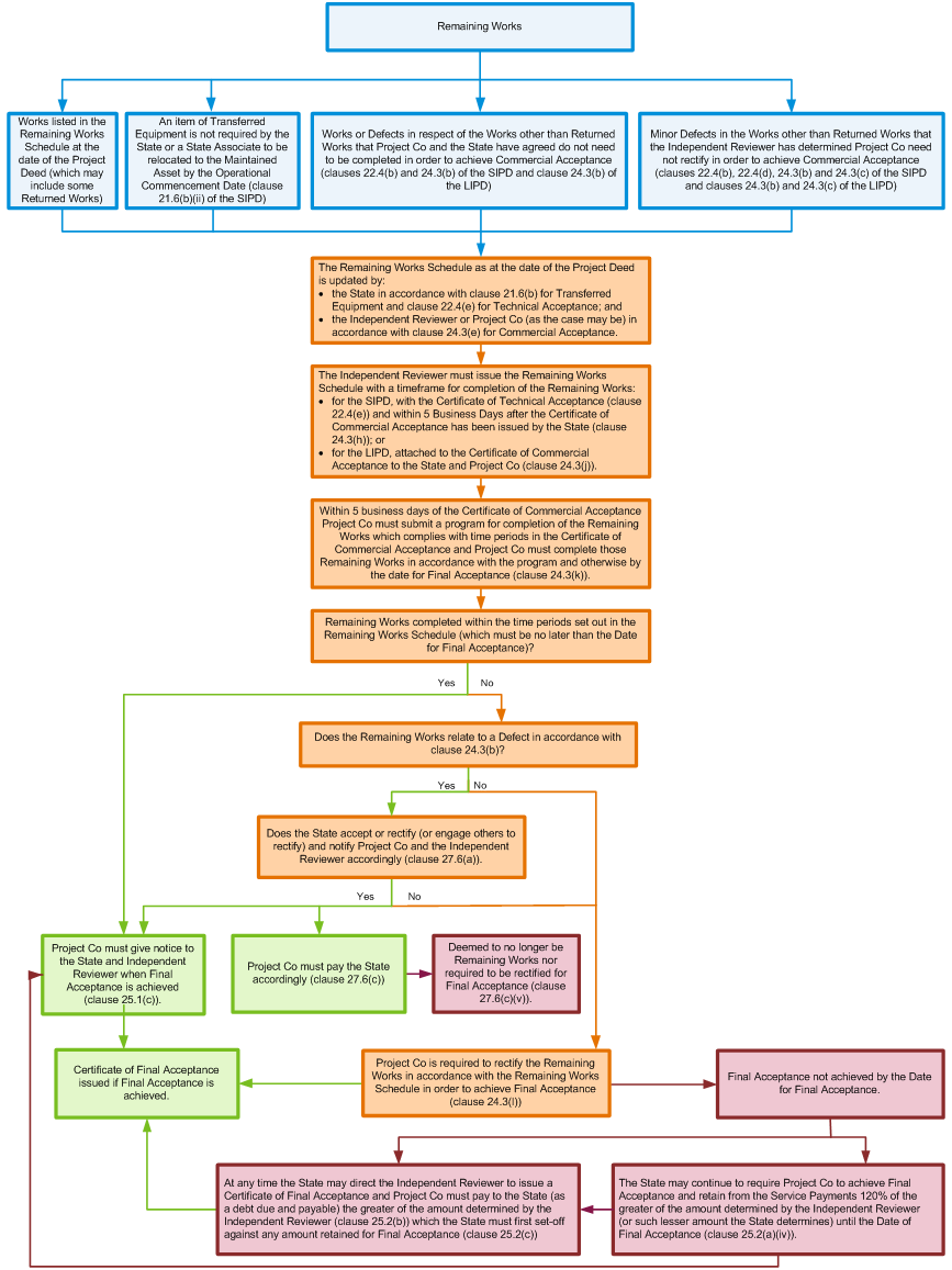 The PV Standard Project Deeds include a concept of Remaining Works, being those Works which are required to achieve Final Acceptance but do not prevent the Project Assets from being operational and are therefore not required to be completed to achieve Commercial Acceptance.