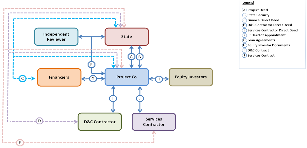 | Finance Direct Deed | The Finance Direct Deed is between the State, Project Co, the Facility Agent and the Security Trustee on behalf of the Financiers. This document sets out, amongst other things, the respective rights and obligations of the State and the Financiers in the event of default by Project Co under the Project Deed and certain defaults by Project Co under its financing documents. |