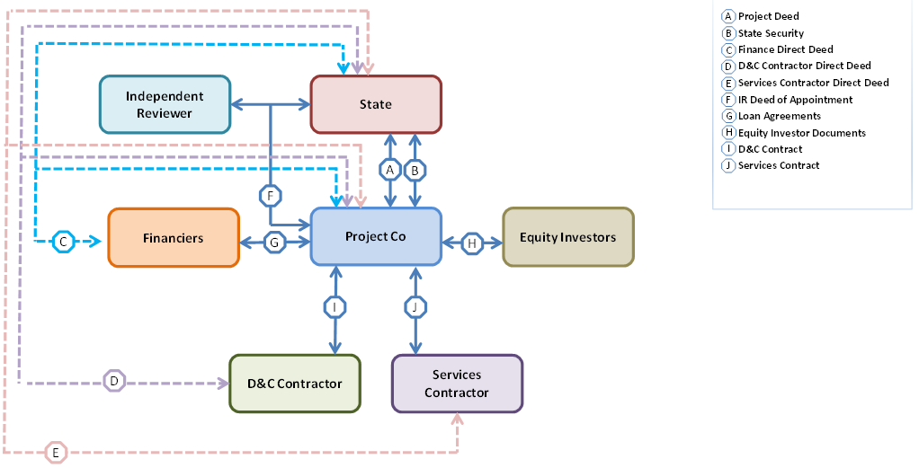 The State is seeking to contract with a single corporate entity (Project Co) to deliver the Project. The contractual framework for the Project will adopt a typical document structure as used for availability PPPs in Victoria under the Partnerships Victoria Framework.