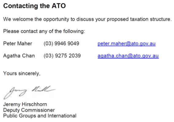 Australian Taxation Office Open Letter to Respondents