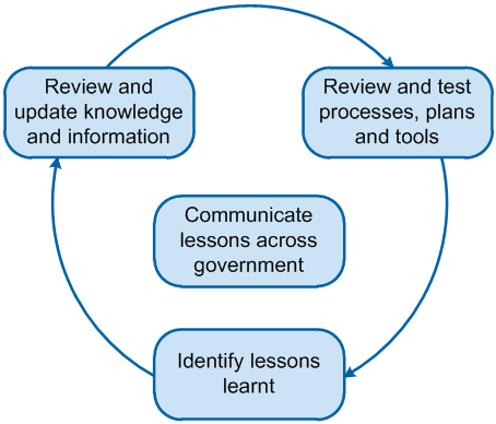 Identifying and recording 'lessons learned' is both an information collection process and a contract management review process. By identifying risks that have materialised and their consequences, the government party deepens its understanding of the likelihood and severity of the risk. By examining the contract management strategies used to control and mitigate that risk, it can assess the effectiveness of that strategy and identify potential improvements. |