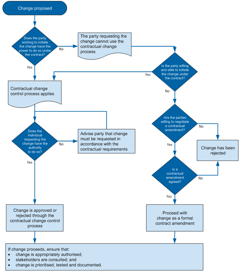 The flowchart below (Figure 13.1) illustrates the steps in determining whether a change can be made through a contractual change control process, and who can request the change.