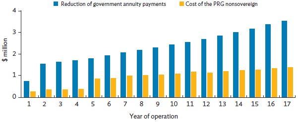 Figure 7.5: Government Annuity Payments with and without Multilateral Development Bank Sovereign Partial Risk Guarantees