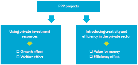 The allocation of risk and improving service quality through a PPP can be achieved through higher value for money and efficiency. ADB and KDI (2011) show that PPPs can have positive ripple effects on an economy by contributing to growth through private capital inputs, enhancing social welfare by the prompt delivery of services and the early realization of social benefits, and reducing fiscal burdens through better value for money. And, when PPP's use advanced financial techniques, they can contribute to developing financial markets.