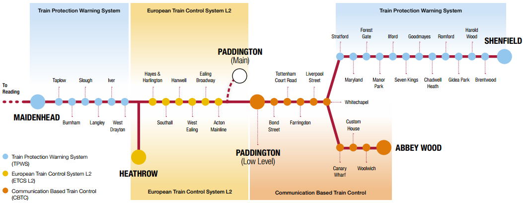 Figure 12 Signalling systems on the Crossrail route