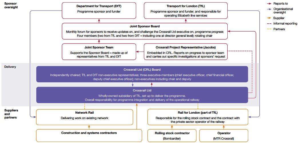 This then makes it clear that the Crossrail exec attends sponsor board and is challenged on progress. We also propose including a solid red arrow on the right hand side of the diagram from the box 'Crossrail Ltd' to the box 'Joint Sponsor Board'.