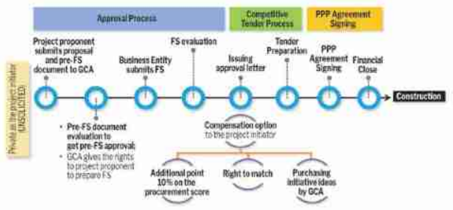 As already mentioned above, PPP unsolicited proposal is initiated by the private sector. The stages framework of this PPP unsolicited proposal is quite the same: Planning, Preparation and transaction. However, the planning and preparation were done by private sector, while the transaction was done by the government (GCA).
