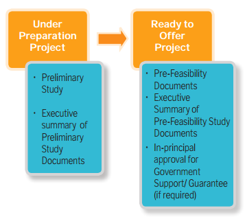 In order to be registered in the PPP Book, the Minister, Head of Institution or Head of Local Government must submit their project proposal to BAPPENAS along with a statement about the Ministry/Institution or Local Government working unit that will be responsible for planning, preparation and transaction of the proposed PPP project. The PPP project proposal should be accompanied by supporting documentation that differs between planning stages, as shown in Figure 7.