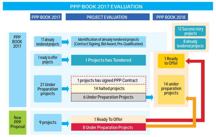 Figure 9 summarizes the results of the evaluation process carried out since the publishing of the previous edition of the PPP Book. Of the 22 projects contained in the 2017 edition, some projects have been removed, some are carried in this edition. The carried projects are: