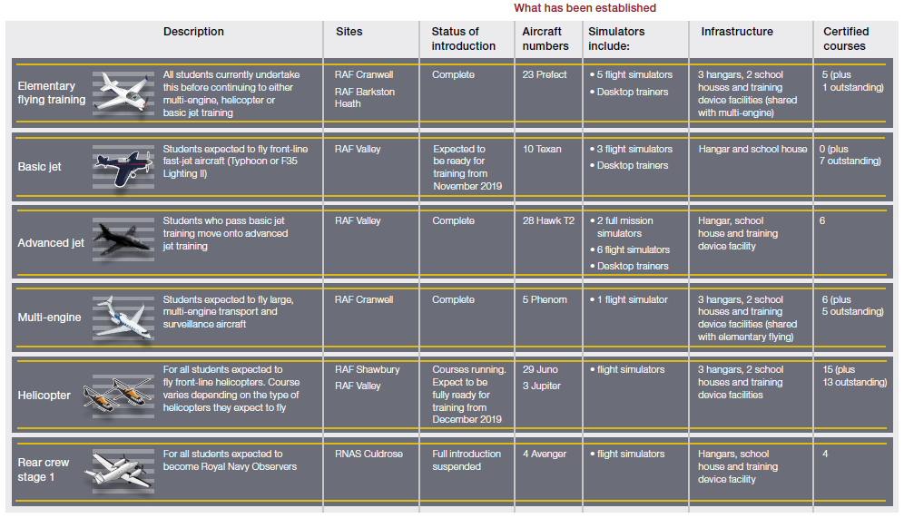Progress introducing the Military Flying Training System (MFTS), July 2019