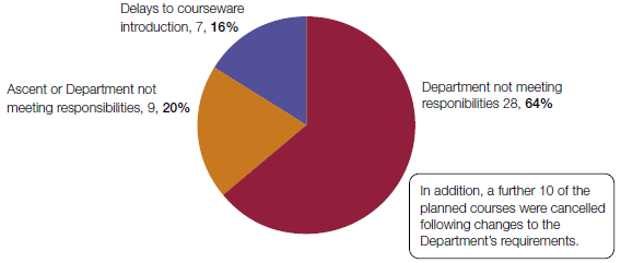 Of 369 planned courses, 44 have been cancelled for one or other party failing to fulfill its responsibilities