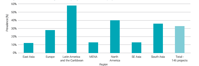 Figure 3: Prevalence of renegotiation by region, based on 146 projects