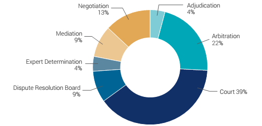 Figure 10: Methods used to resolve disputes, based on 28 projects with resolved disputes