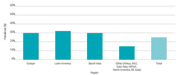 Figure 6: Prevalence of disputes by region, based on 165 projects