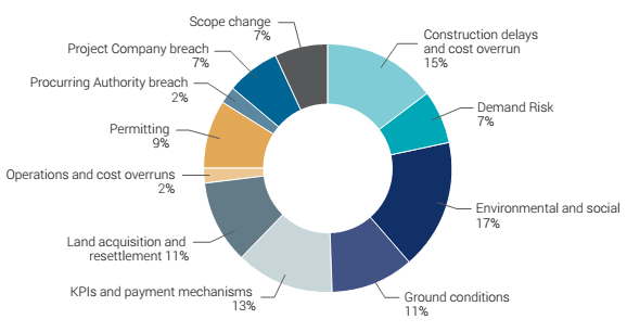 Contractual disputes are quite common in PPPs during both construction and operational periods. Our research found that a formal notice of dispute was issued by one of the contracting parties on 42 projects out of 165 PPPs studied for which dispute data was available, which is a prevalence of 25%.