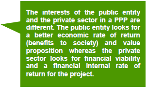 | PPP arrangements are considered successful when they result in a win-win situation for both the public entity and the private partner. The interests of the public entity in a PPP arrangement are as follows: | |