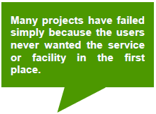 | Ideally, projects are finalised only after an elaborate sector analysis, assessment of demand and supply for the service delivery option, identification of gaps in service delivery, and a review of local community issues that might emerge from stakeholder consultations. A misconceived project tends to fail because there was never any real demand for the service or asset in the first place. |