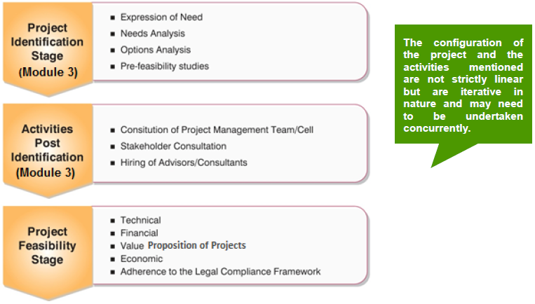 The project development process steps mentioned above can be witnessed in all projects as they have evolved from repeated experiences. Compliance with all the above mentioned steps of project development process would aid in effective project development and implementation. Sometimes depending on the prevailing circumstances/ context and/ or past experience of the public entity in developing similar projects; a few of the above mentioned steps in project development are relaxed or omitted. However, such omission is not advisable keeping in view the interest of the project.
