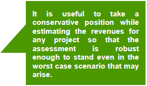 Based on demand and tariff, revenues for the project are extrapolated over the years. Revenues are calculated from all the major sources. In the case of certain projects, revenues generated from support or related activities may be higher than revenues from primary activities.