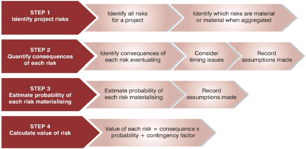 It provides a transparent methodology by using a consistent Government discount rate across projects. The steps in quantifying the risks are explained in the chart below.