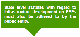 | At the Central level, there is no overarching legislation setting out the guiding principles to develop a project under a PPP framework although there are several guidelines on specific aspects of project development. | |